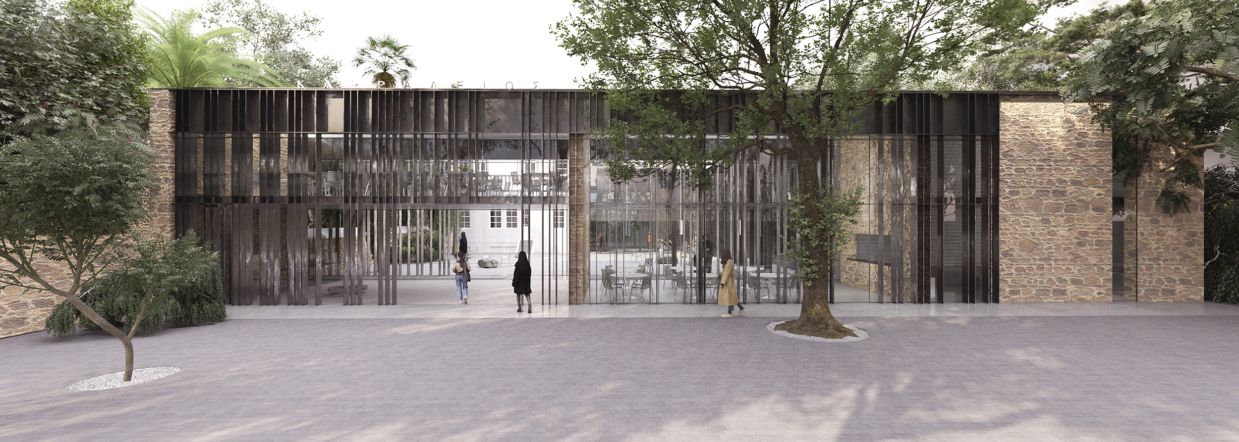 The project reinterprets the historic stone building through a transparent and lightweight addition that frames a new public courtyard — a space of dialogue between the restored heritage and contemporary architecture, between memory and present life.