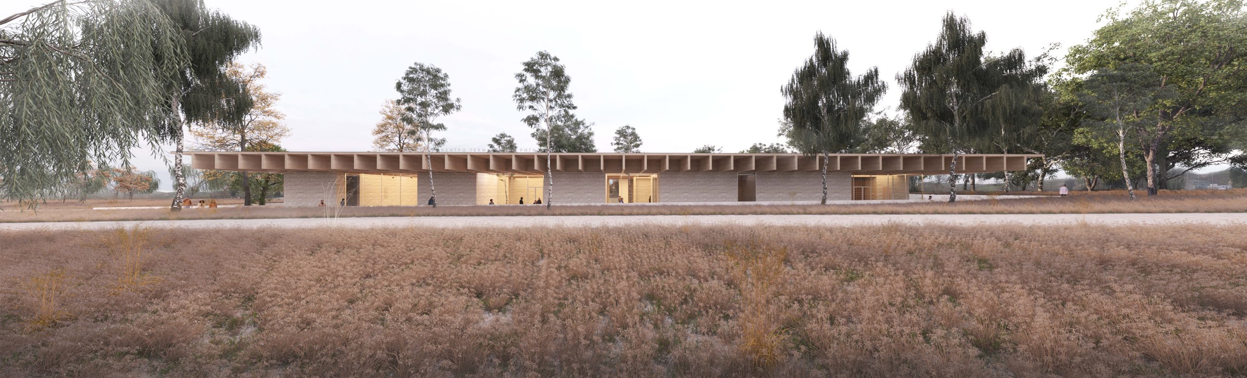 The roof, as the crowning and unifying element of all the functions hosted in the building, provides the conceptual framework as well as the rate of diffusion of information. At the same time, it is a structure that allows flexibility in the organization of indoor, semi-outdoor and outdoor spaces. The natural environment enters the building gradually, culminating in the expansion towards the watercourse side.