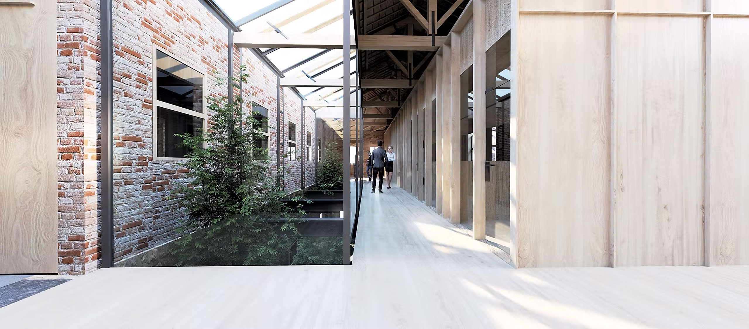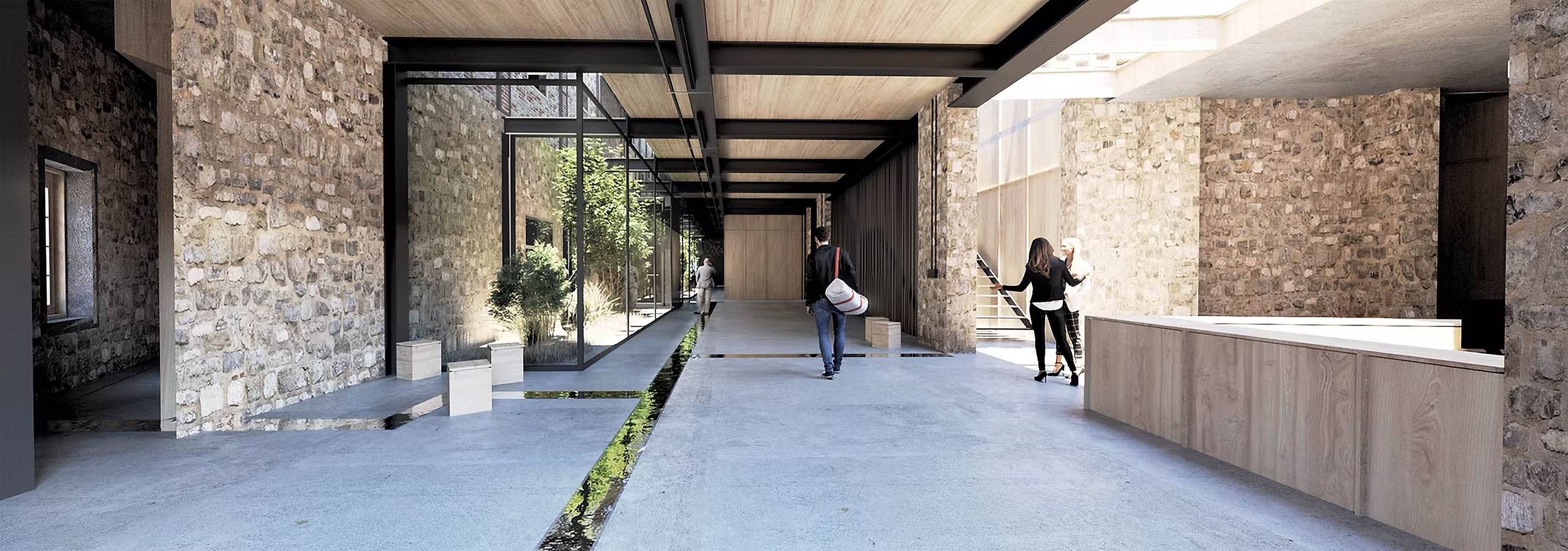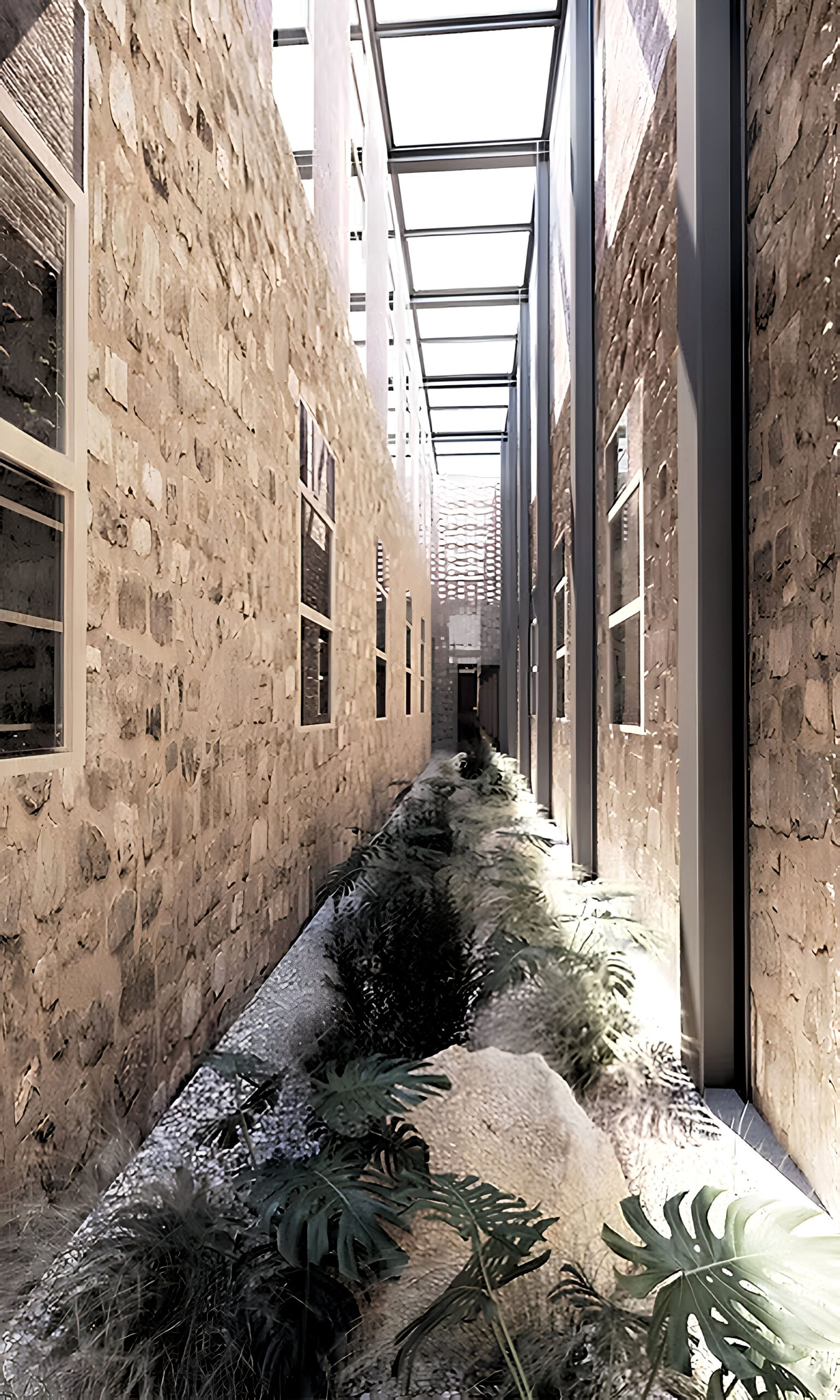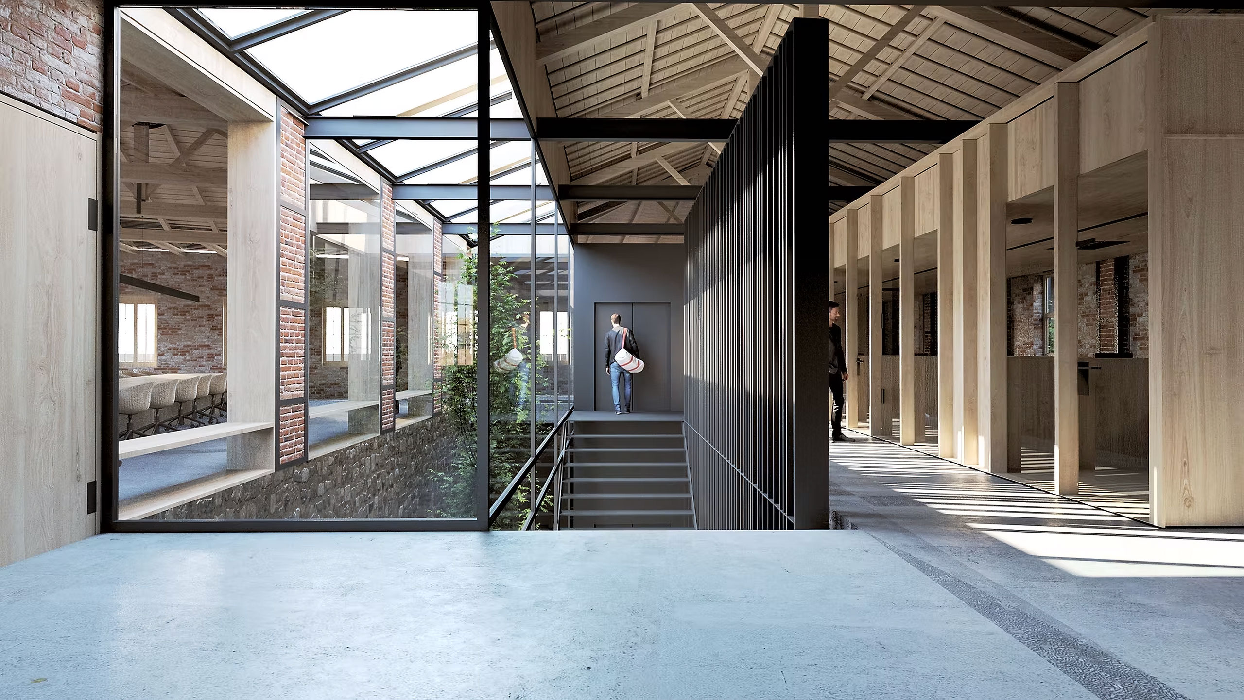 The architectural idea is the introduction of a linear system of atriums that run through all the functional units of the new uses and organize the movement, light and air inside the complex. Contrary to the perception of the building as a hermetically sealed box where mechanical systems take on the role of creating the indoor climate, we propose a method that is in a dynamic relationship with the environment by exchanging heat with the environment through the opening glass surfaces of atriums in two basic operating scenarios.